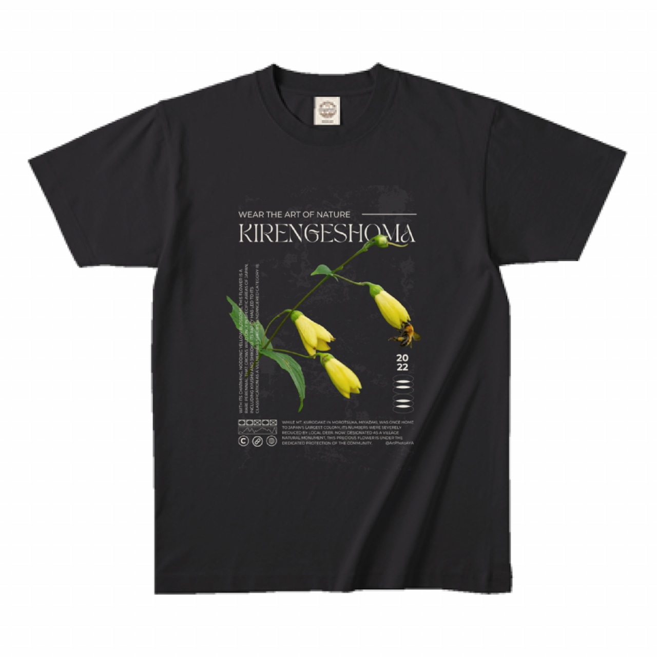 宮崎県諸塚村の黒岳に咲く、絶滅危惧Ⅱ類に指定されたキレンゲショウマをデザインしたTシャツです。